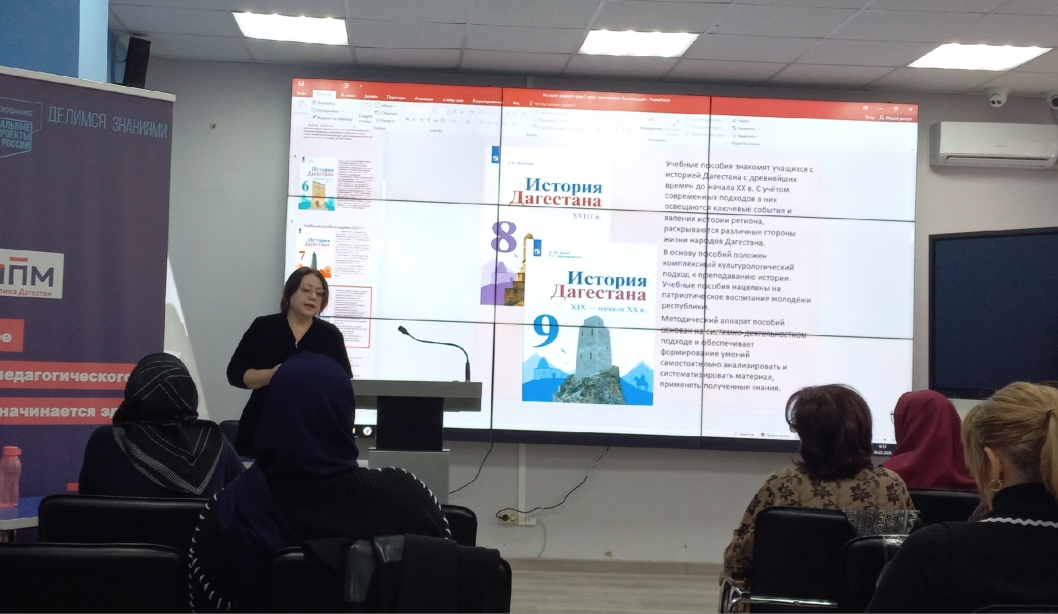 Отметим, что Э.М. Далгат и Р.С. Абдулмажидов являются авторами учебного пособия по Истории Дагестана, для средних школ, изданного в 2023 году. Занятия прошли в атмосфере сотворчества, педагоги отметили важное значение лекций, прочитанных ведущими специалистами-историками. Подобное сотрудничество учёных и педагогов актуально и направлено на актуализацию знаний учителей и учащихся по истории родного края.