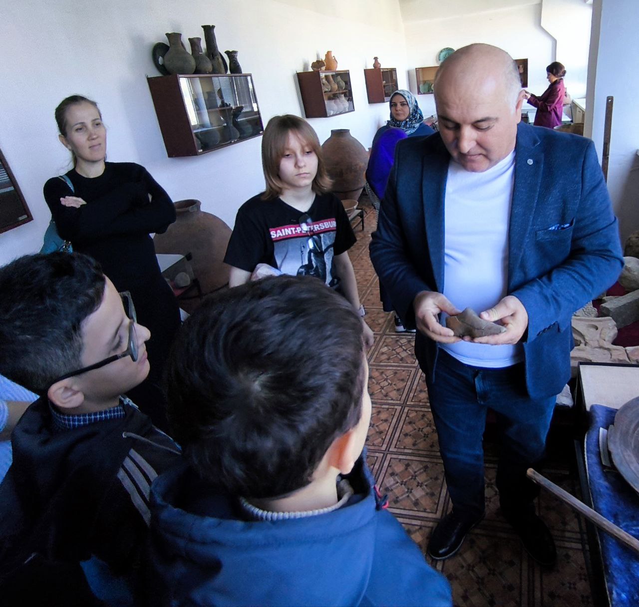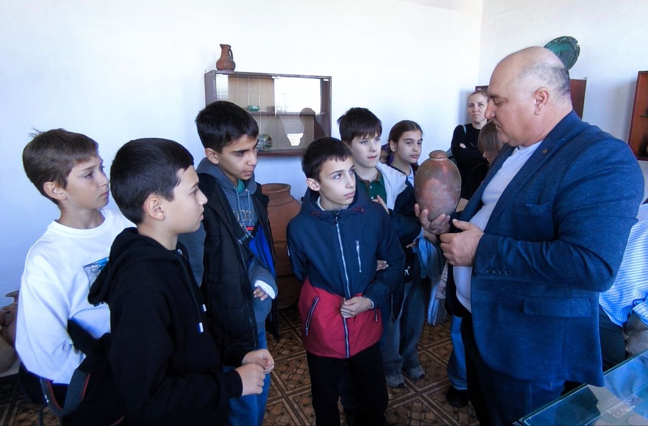 Во время экскурсии в Музее археологии и этнографии Института ребята познакомились с экспозицией, выстроенной по хронологическому и тематическому принципам. Её основой является концепция исторического развития племён и народов, населявших Северо-Восточный Кавказ от древнейших времён до развитого средневековья. Хронологический диапазон экспонатов охватывает почти 2 миллиона лет.