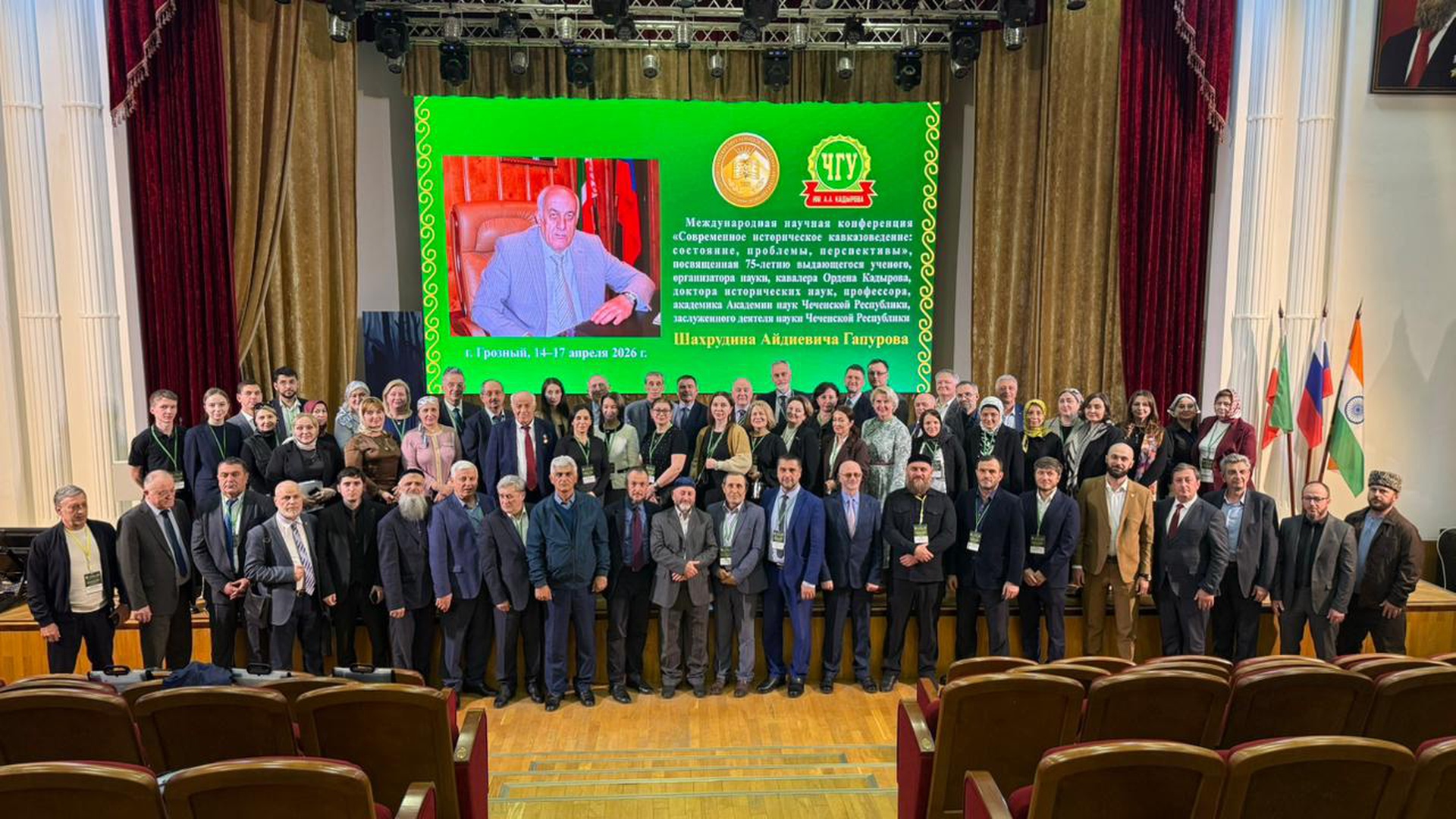 14-17 апреля 2026 г. в Чеченском государственном университете им. А.А. Кадырова состоялась Международная научная конференция «Современное историческое кавказоведение: состояние, проблемы, перспективы», посвященная 75-летию выдающегося ученого, организатора науки, кавалера Ордена Кадырова, доктора исторических наук, профессора, академика Академии наук Чеченской Республики, заслуженного деятеля науки Чеченской Республики Шахрудина Айдиевича Гапурова. Организаторами конференции выступили Академия наук Чеченской Республики и Чеченский государственный университет им. А.А. Кадырова.