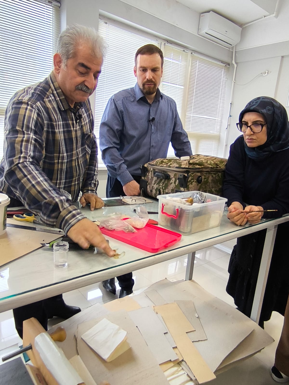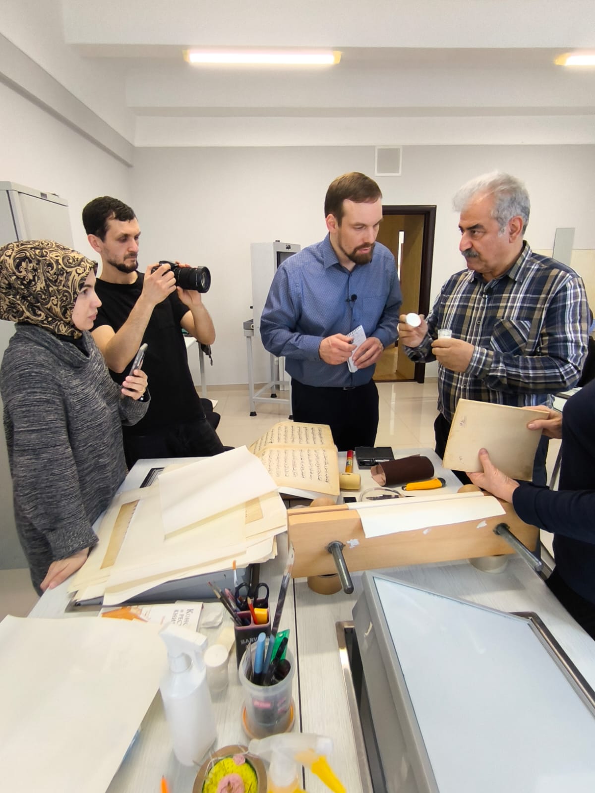 Иранский специалист ознакомился с работами сотрудников лаборатории, поделился своим опытом работы в реставрации краев и разрывов во внутренней части листов древних книг, чтоб не повредить и не скрыть текст рукописи. В свою очередь, сотрудники лаборатории показали гостю свою работу: от производства бумаги до реставрации, активно задавали профессиональные вопросы, на которые Хамид Малекиан отвечал с большой вовлеченностью.